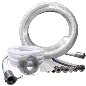 en PVC, silicón, y más. Para succión y descarga de gran longitud en servicio ligero y servicio pesado. Mangueras que soportan desde -60°C hasta 200°C.
